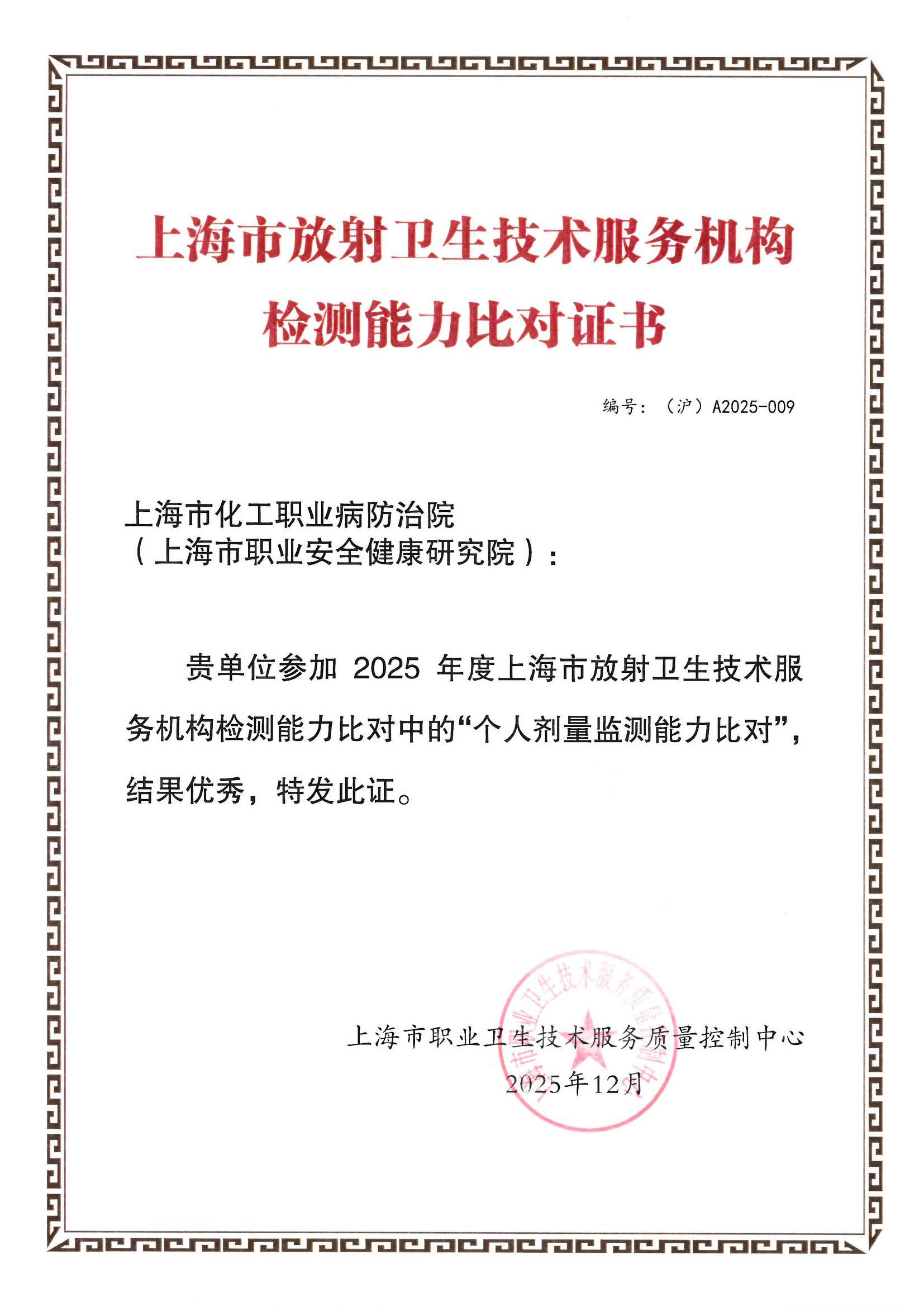 我院在2025年度上海市放射卫生检测能力比对中荣获“优秀”佳绩