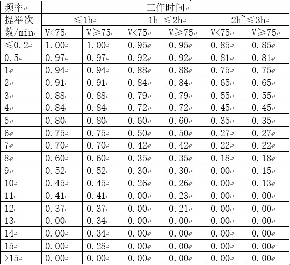 F=提升动作的频率与持续时间(单位时间内的操作次数)