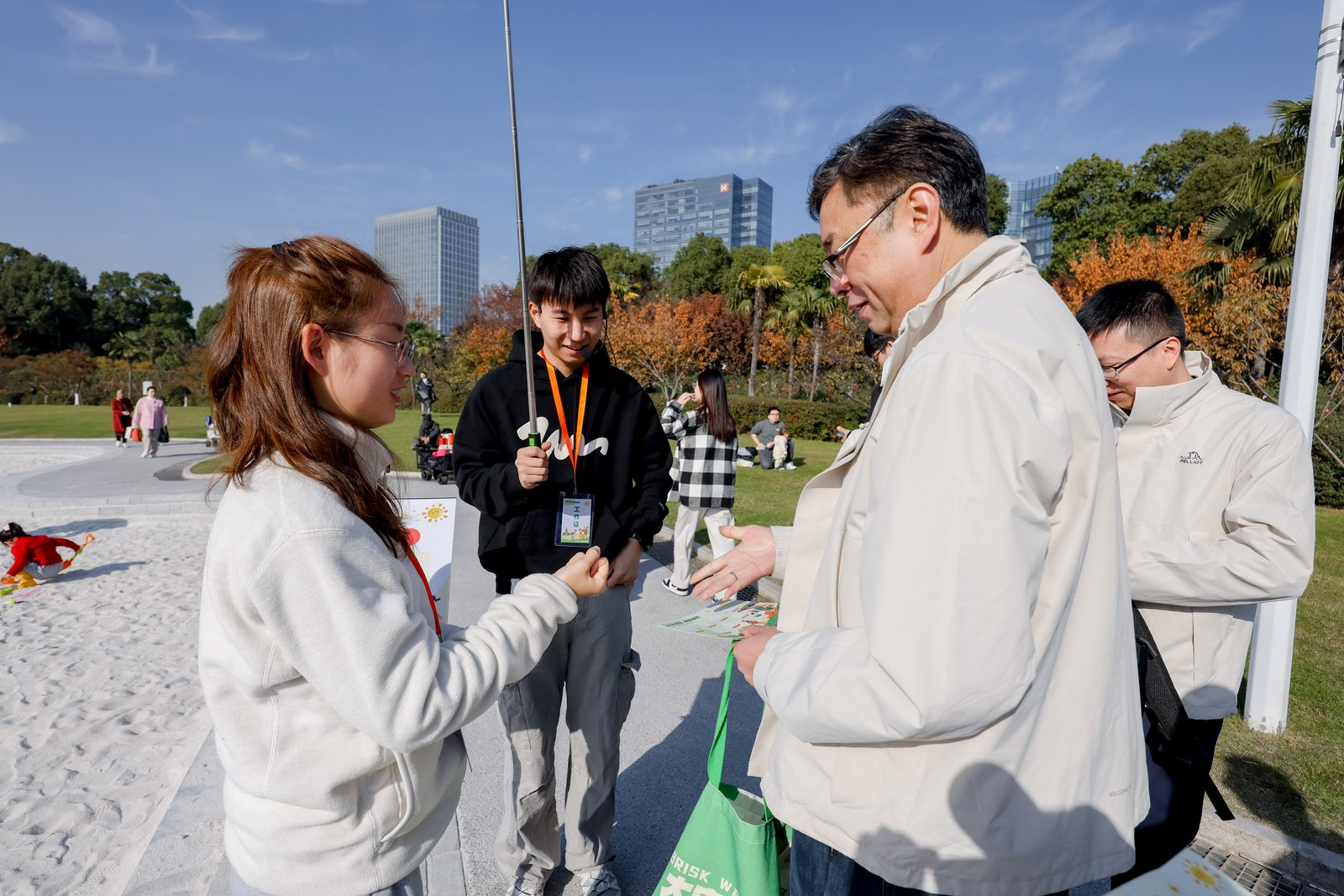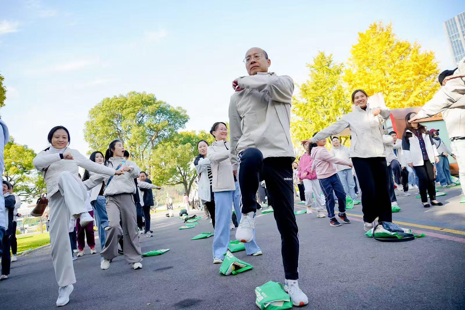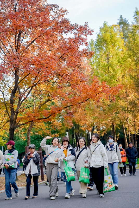 时值深秋,大宁公园内层林尽染,宛如一幅斑斓的画卷。道路两旁,银杏树披上金装,叶片如蝶般随风轻舞,在阳光下闪烁着温暖的光芒;红枫则似燃烧的火焰,点缀在绿意未尽的枝头,与蓝天白云相映成趣。湖面波光粼粼,倒映着岸边的秋色,微风拂过,送来阵阵清凉与草木的芬芳。这如诗如画的景致,为活动平添了几分浪漫与诗意。